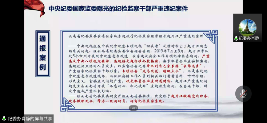 为进一步加强全体党员干部的宗旨意识、道德意识、纪律意识,让党员干部明道德、守底线从而增强廉洁意识,校纪委组织开展2020年“廉洁文化宣传教育月” 法规政策联合宣讲于5月29日通过腾讯会议召开。校党委副书记兼纪委书记张海兰、理学学院联合党委书记杨铭、近三百名教师参加此次会议,会议由杨铭书记主持。