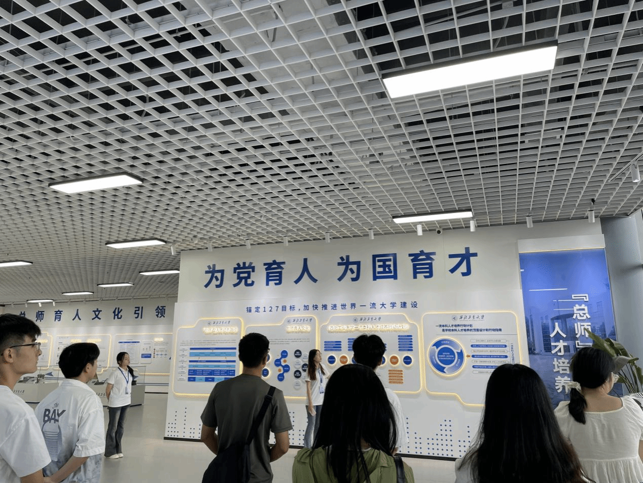 在讲解员的细致引导和讲解下,同学们先后参观了“总师”型人才培养、人才培养奖项展示、本科人才培养专项班、“做中悟”人才培养体系、本科教学质量保障体系和经典教材及教具展示六个板块内容,深入了解了成人片 特有的“低调务实、兼容并包,厚积薄发、为国铸剑”的“总师育人文化”,深刻体悟了成人片 “总师”型人才培养的历史、传承与创新过程,更全面领略了在奋力实现中华民族伟大复兴的新征程中西工大人所付出的磅礴伟力。