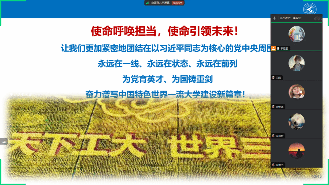 李俊逸:作为一名研究生党员,我们应该不断提高自己的政治觉悟和专业能力,坚持求真务实的工作作风,全面提升综合素质,积极参与社会实践,将个人理想与国家发展紧密结合,勇担时代使命。
