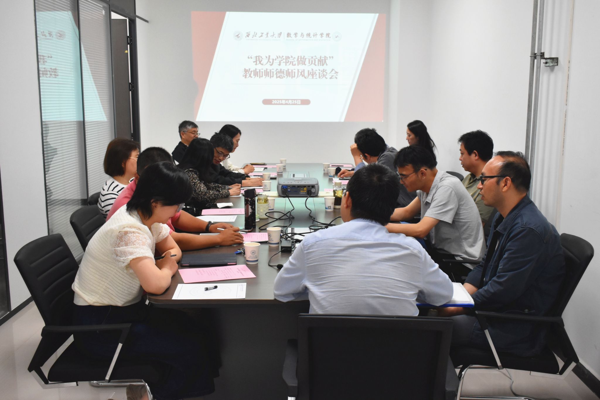 4月25日上午,学院“我为学院做贡献”师德师风暨新晋教授职业发展规划座谈会在海天苑E座202会议室举行,共话教育责任与学科发展。学院党委书记王莉、院长聂玉峰及十余名自学院成立以来晋升为教授的代表参会,围绕师德师风建设、职业发展规划等议题展开深入交流,会议由王莉主持。