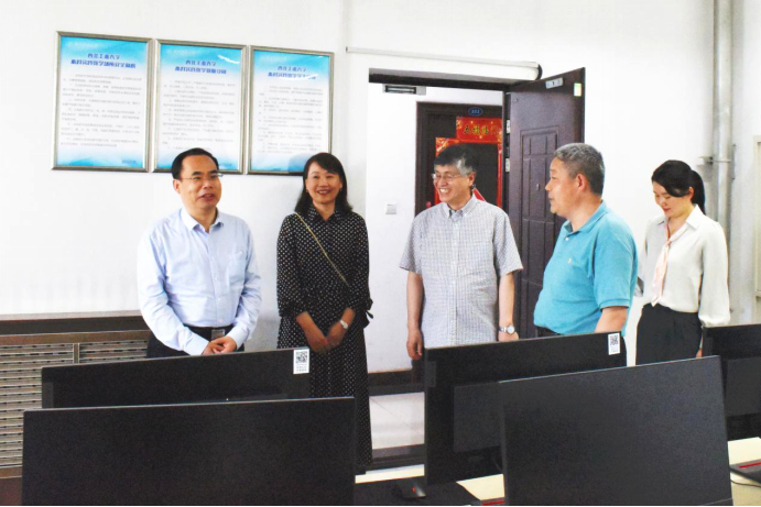程基伟一行首先参观了学院数学实验教学中心并行计算实验室、图形工作站高性能计算实验室。随后开展座谈,会上聂玉峰汇报了学院基本情况以及学院近期在人才培养、科学研究、国际合作等方面的工作推进情况,王莉从党委概况、党管人才工作等方面汇报了学院党组织建设情况。在之后的交流座谈中,各党支部书记依次介绍了支部情况。