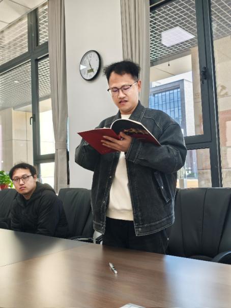 11月29日上午,成人片 硕士生第八党支部在海天苑大楼E101开展 “深入学习‘十五五’规划建议,奋力推进中国式现代化”主题党日活动,会议由支部副书记王梦甜同志主持,全体党员通过系统学习、交流研讨,深化了对国家战略部署的理解,明确了青年党员的时代责任与奋斗方向。