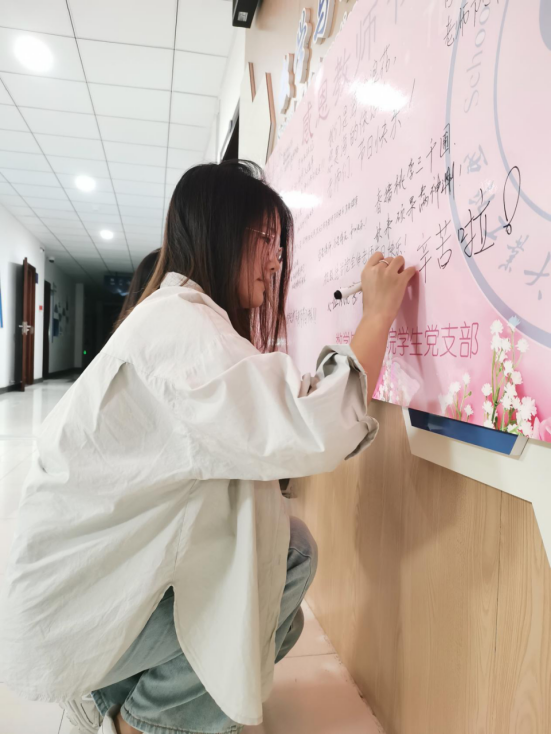 指尖文字传师恩。 *成人片 本科生高年级第一党支部、第二党支部,2021级硕士生第二党支部、第三党支部携手举办“展板写祝福”活动,参与学生纷纷用质朴的语言表达了对老师们真挚的感激。