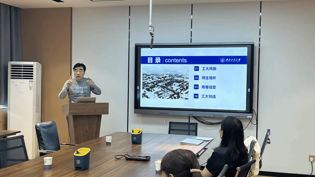校史+思政课堂,知校史促传承。为了帮助青年教师深入了解校史校情,进一步加强师德师风建设,学院特别邀请党委宣传部郭友军老师讲授“浅谈照片背后的工大故事”专题报告,他结合自身50年来用镜头记录西工大发展的亲身经历,从“工大风貌、师生情怀、青春颂歌、工大创造”共四个方面梳理出学校的“前世今生”,一组组照片昭示着西工大人砥砺奋进、拼搏进取,矢志不渝投身报国的精神。