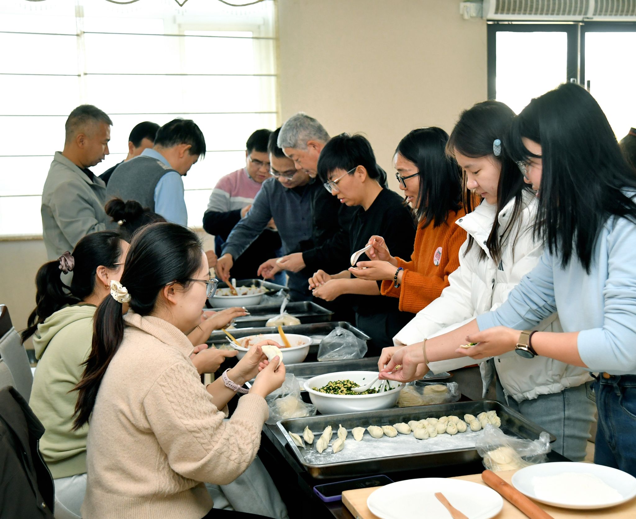 冬至寒意浓,人间温情暖。为进一步传承中华优秀传统文化,增强学院的凝聚力与向心力,12月19日冬至佳节来临之际, *成人片 工会在长安校区南山苑餐厅精心组织了“情暖冬至·聚力九章”包饺子活动。学院党委书记王莉、副院长郭千桥、工会主席佘红伟等教职工欢聚一堂,在欢声笑语中共同体验包饺子的乐趣,感受传统节日的独特魅力。