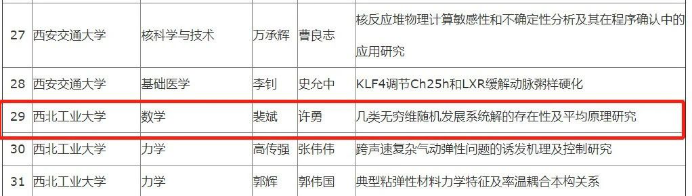 日前,陕西省学位委员会和陕西省教育厅下发了《关于公布2020年陕西省优秀博士学位论文评选结果的通知》(陕教位办〔2020〕1号)。经单位推荐、通讯评议、专家会议评审和厅务会审议,共评出2020年陕西省优秀博士学位论文99篇,其中数学学科共入选2篇。 *成人片 许勇教授指导的裴斌博士的学位论文《几类无穷维随机发展系统解的存在性及平均原理研究》位列其中。截至目前,成人片 共入选陕西省优秀博士学位论文共15篇,覆盖了基础数学、计算数学及应用数学的不同学科方向。