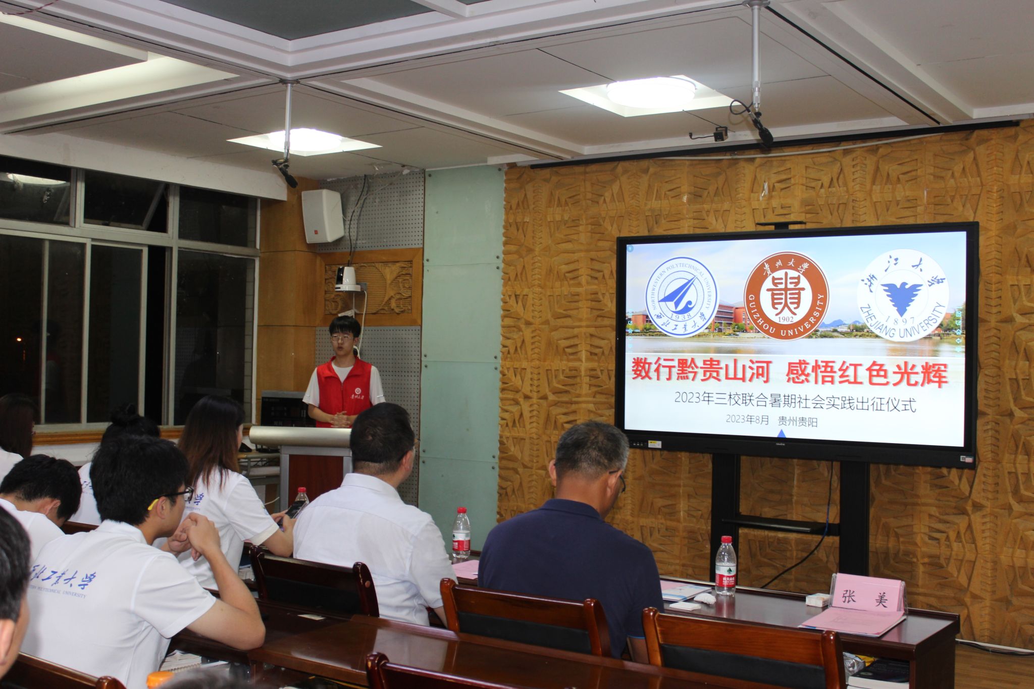 2023年8月5日,成人片 、贵州大学及浙江大学三校联合社会实践出征仪式在贵州大学东校区博学楼329会议室举行。贵州大学 *成人片 院长王锦荣教授、贵州大学学术委员会办公室主任贾平生教授、成人片 党委副书记张莹教授、成人片 学校办公室戴卓老师、贵州大学 *成人片 辅导员张美老师出席,三校实践队全体成员22人参加。会议由贵州大学 *成人片 团委书记高洪老师主持。
