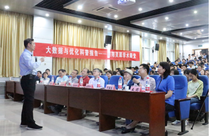 5月12日下午理学院学术报告厅,中国科学院院士、发展中国家科学院院士袁亚湘老师应邀来到成人片 ,为广大师生带来一场主题为《大数据与优化》的精彩报告。此次报告会由党委学生工作部主办, *成人片 、计算机学院承办, *成人片 院长聂玉峰、副院长徐根玖、计算机学院党委副书记万海东、 *成人片 党委副书记张莹、教育实验学院副院长蔡力、 *成人片 张肇炽教授以及200余名师生聆听了报告会。报告会由 *成人片 党委副书记(主持工作)王莉主持。
