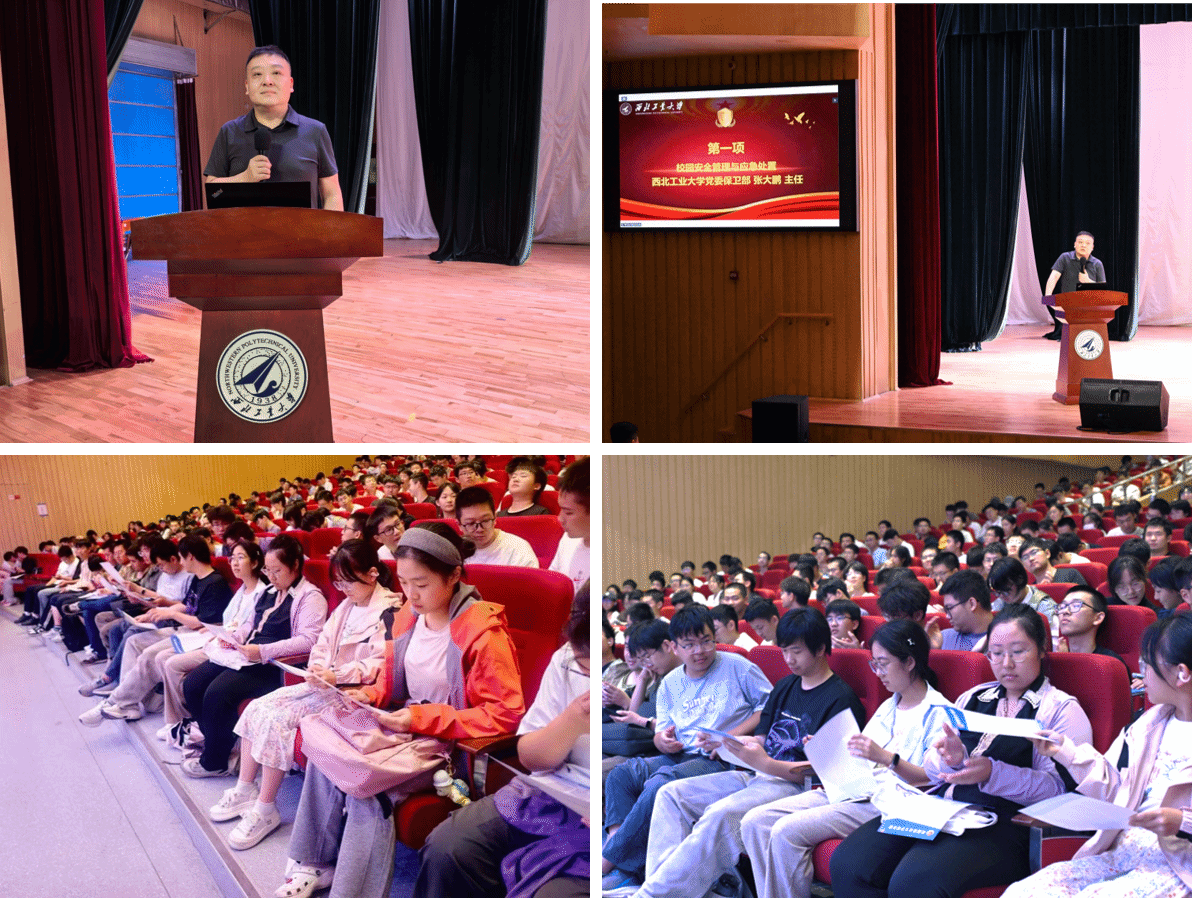 为进一步增强新生安全防范意识,提高应急处置能力,9月11日,成人片 与航空学院联合为2025级新生举办了一场内容丰富、形式多样的安全法制教育讲座。出席本次讲座的嘉宾有成人片 党委保卫部张大鹏主任、西安市公安局高新分局治安大队王冬警官、西安市公安局交通管理支队碑林大队刘潇泽警官、 *成人片 党委副书记张莹、航空学院2025级本科生辅导员韩少强、 *成人片 研究生辅导员宋博、 *成人片 2025级本科生辅导员张倩。讲座由张倩主持。