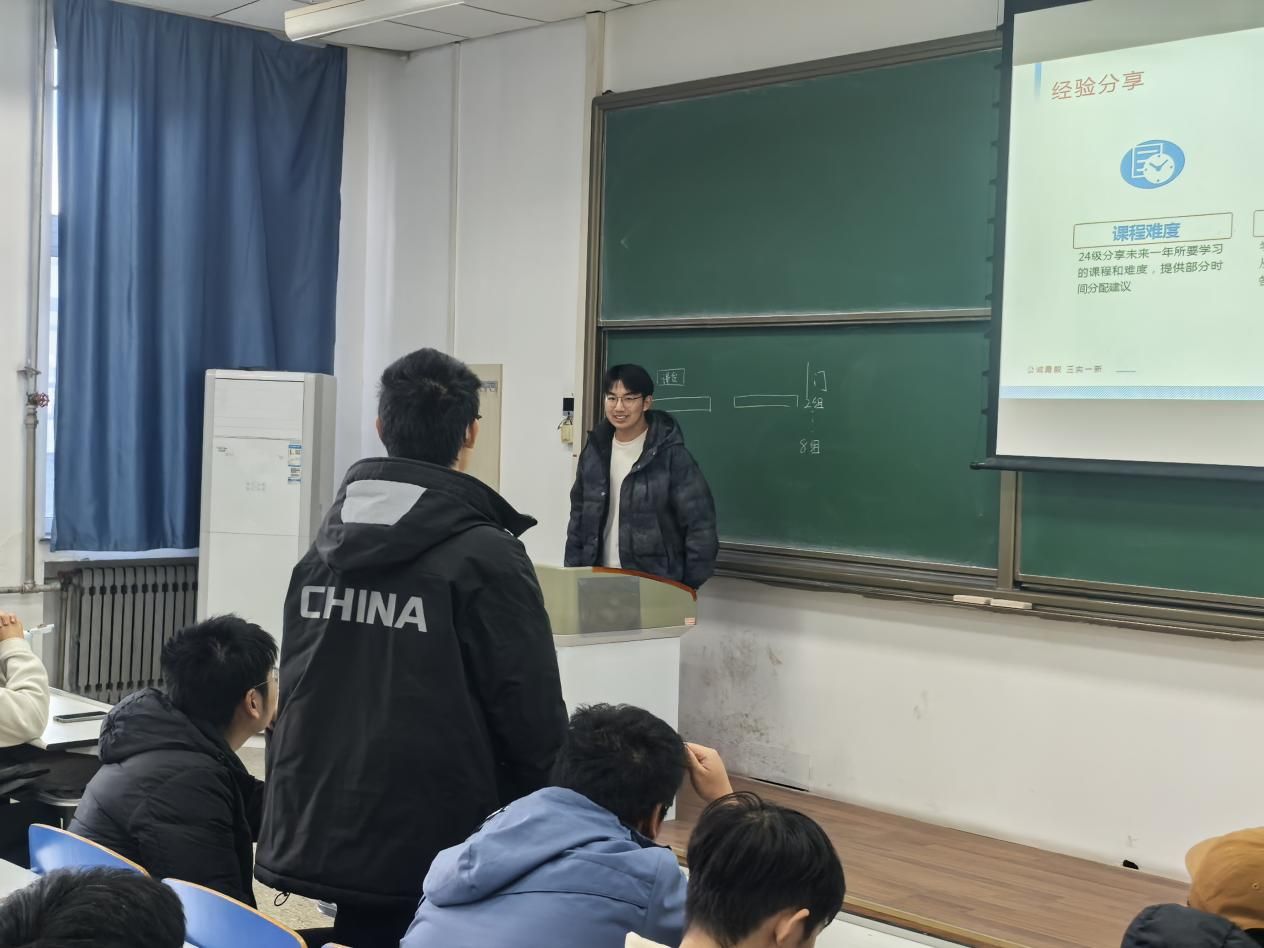在“明确方向砥砺前行”环节,24级学生代表进行了详实的经验分享。他们介绍了未来一年即将学习的核心课程及其难度分布,提醒低年级同学合理规划时间,注重基础课程的扎实掌握,同时提前了解专业分流政策与各专业培养方案。