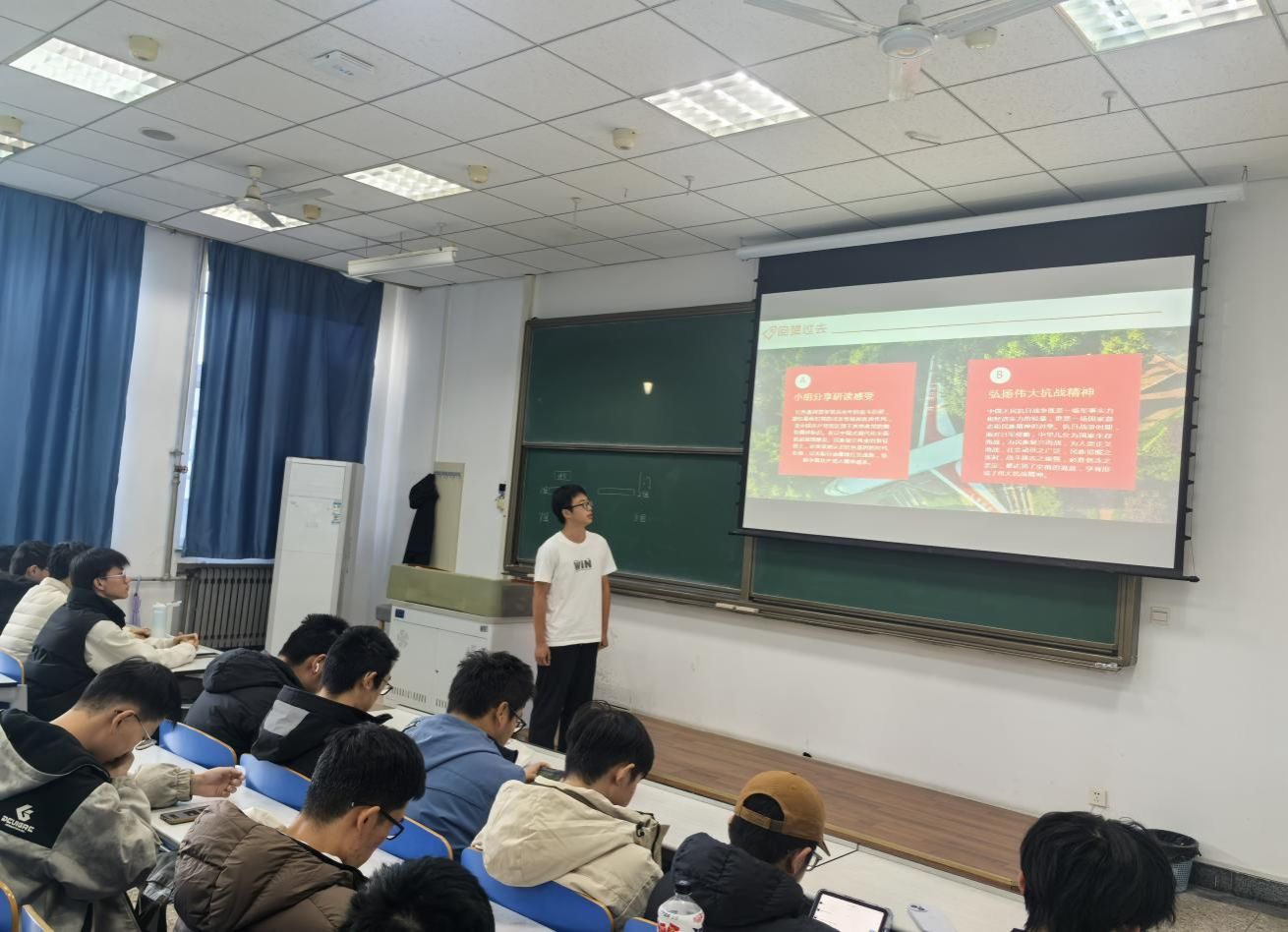 特别地,班会聚焦“伟大抗战精神”的深刻内涵。汇报指出,抗日战争不仅是军事与经济的较量,更是国家意志与民族精神的对垒。中华儿女为国家生存而战、为民族复兴而战、为人类正义而战,展现出空前的社会动员力与民族觉醒力。这种“不畏强敌、百折不挠”的精神,正是当代青年在面对学业挑战、科研攻关与社会实践中应当继承和发扬的宝贵财富。