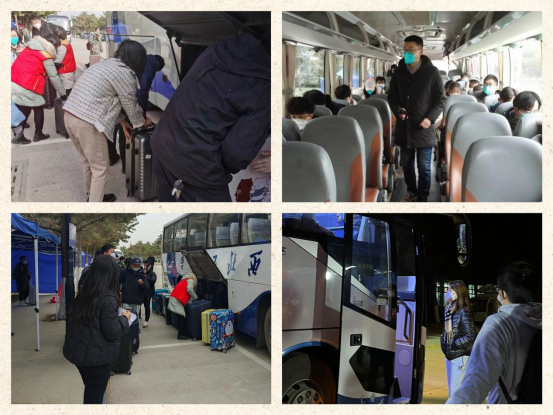 用心坚守,用爱守护。本着为学生服务的原则,根据疫情防控工作情况,为促使返乡学生安全有序踏上归程,学院学工队伍全员参与点对点专车送站服务,帮助学生搬运行李、引导学生有序乘车,护航学生安全返乡。