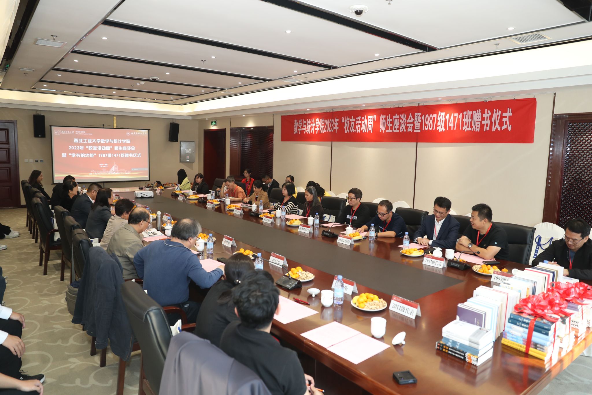在庆祝成人片 建校八十五周年之际,10月14日, *成人片 2023年“校友活动周”师生座谈会暨“学长的火炬”1987级1471班赠书仪式于长安校区南山苑成功举办。学院党委书记王莉,学校校友总会办公室副主任刘江,学院党委委员王振海,学校原1系党总支副书记张雪霞,学院资深教师代表张凯院、欧阳洁、彭国华,曾在学院担任辅导员工作的台炳龙、王莹与来自祖国各地的学院1987级、1992级、1997级、1999级、2011级、2017级等近30位校友欢聚一堂,畅叙别情,展望未来。