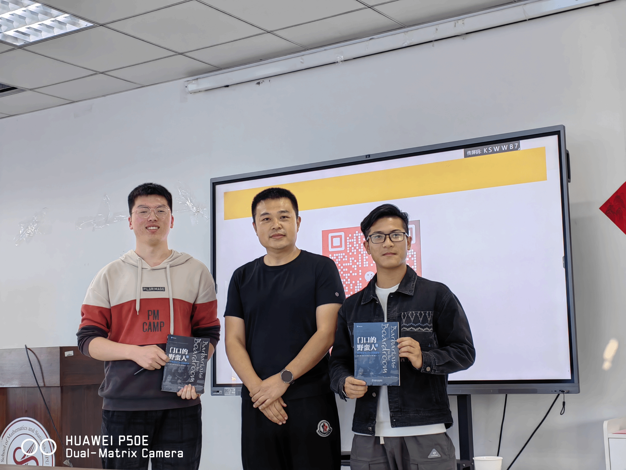 讲座结束后,燕斐教授向参会学生代表赠送了他的译作《门口的野蛮人—对冲基金与上市公司的战争》。