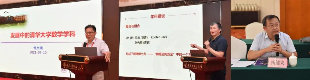 7月10日下午论坛聚焦基础数学学科建设。郭千桥首先汇报了成人片 基础数学学科建设现状。邹文明以“发展中的清华大学数学学科”为题介绍了清华大学数学学科建设经验,李嘉禹、杨健夫也分别介绍了中国科学技术大学和江西师范大学数学学科建设的有益经验。在座谈环节,孙笑涛、冯荣权对成人片 基础数学学科建设进行了具体指导。