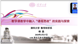 为提高学院教师的课程思政意识,实现数学课程与思政课程同向同行,形成协同效应, *成人片 于3月27日下午3点通过zoom视频会议,举办了第二期启翔数苑教学研究沙龙活动。本次沙龙活动主题为“立德树人,润物无声,大学数学课程思政之我见”,特邀清华大学数学科学系杨晶副教授,针对数学课教学中融入“课程思政”的实践与探索的经验和体会进行了分享,并就教师如何结合新兴教育技术和在线教学方法,把思政教育贯穿大学数学课程教学全过程,坚持立德树人展开交流和讨论。理学学院联合党委杨铭书记、张莹副书记, *成人片 都琳副院长、徐根玖副院长参加了此次沙龙活动,沙龙由 *成人片 副院长都琳主持。 *成人片 、西安电子科技大学以及西安邮电大学的30余位教师参加了此次沙龙活动。