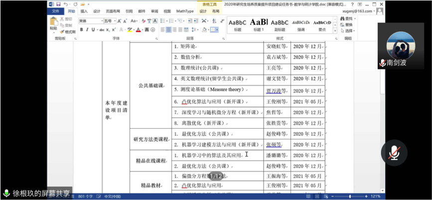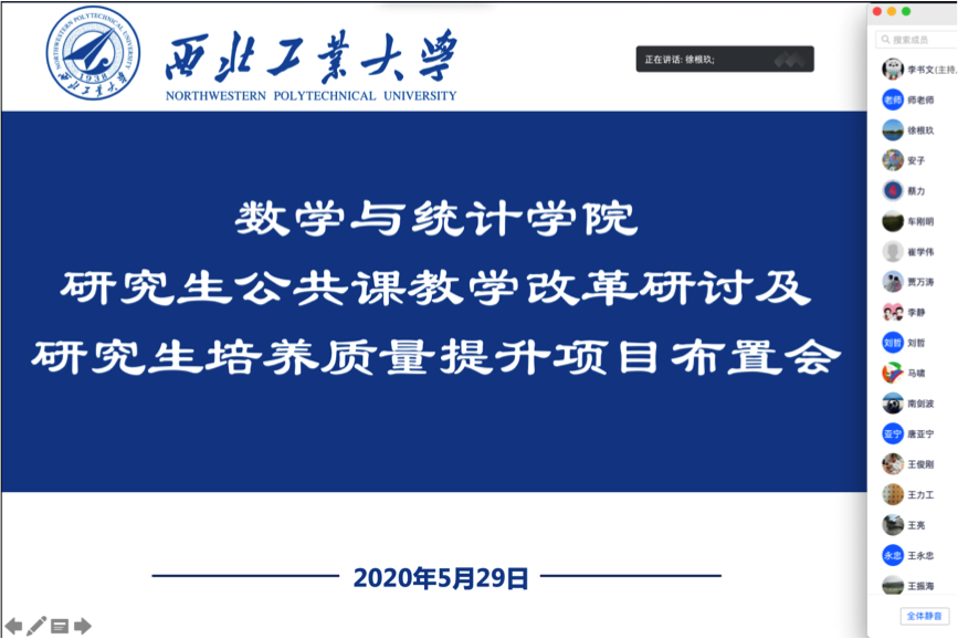 为贯彻落实教育部“在线教学与线下课堂教学质量实质等效”的要求,有效做好学生分批次返校期间线上、线下教学活动的平稳衔接,确保研究生招生规模扩大之后的数学公共课教学质量,规划新形势下研究生公共课的改革发展思路,推进公共课的教学改革,5月29日, *成人片 通过腾讯会议召开研究生公共课教学改革研讨及研究生培养质量提升项目布置会,学院院长聂玉峰、副院长徐根玖、主管研究生工作的二级学科负责人、公共课负责人、首席教授及任课教师及研究生培养质量提升项目负责人参加了此次会议,会议由徐根玖主持。