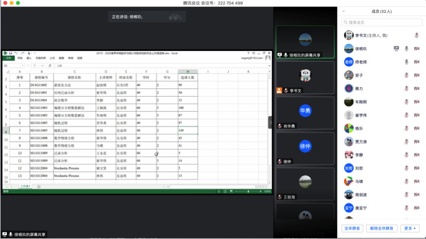 根据学校研在线教学和疫情防控工作的实际情况,与会教师就本学期课程期末考试方案进行了充分研讨。针对数学学科公共课程选课学生规模大、推理演算复杂、线上考试组织难度高的实际特点,任课教师普遍倾向于在疫情防控政策允许的情况下组织线下考试。但面对部分学生无法返校,且学校暂不允许20人以上规模班级进行线下授课、考试、聚集的要求,与会教师群策群力,初步确定了一套在线考试预案。拟将通过主客观题相结合的方式完善课程考核内容,使其匹配在线考试形式。同时将学生分成每20人一小班加入腾讯会议等在线平台组织在线考场和视频监考,保证考试过程规范有序。考试结束学生拍摄答题情况并通过qq群作业提交功能收集考生试卷。充分利用现代信息技术手段和平台,保证疫情防控期间期末考核如期顺利完成。