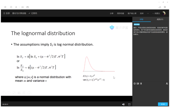 图2商磊老师对布莱克·寿尔斯方程进行讲解
