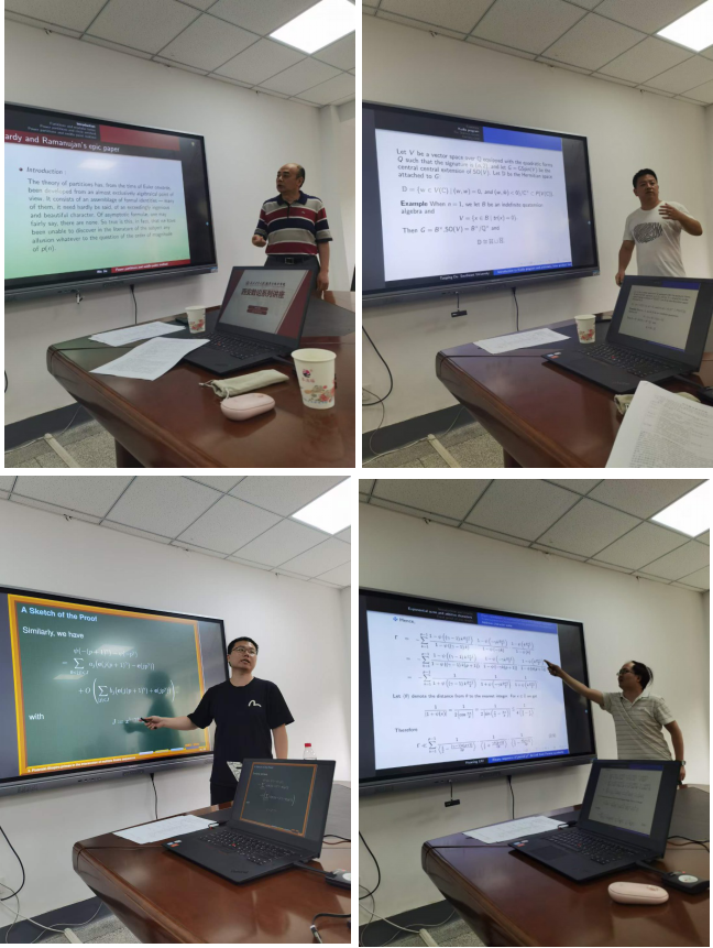 本次会议主要包含五个报告。第一个报告是法国国家科学研究中心吴杰特级研究员的关于整数分拆与鞍点法。他首先介绍了Hadry-Ramanujan(1918年),Wright(1934年),Vaughan(2015年),Gafni(2016年)等人的结果,然后阐述了自己近期利用“鞍点法”得到的关于整数分拆问题的更简洁优美的公式。