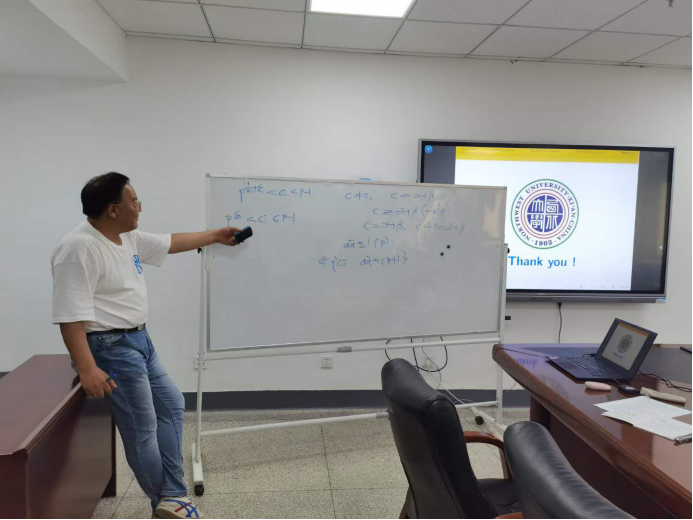 最后一个报告是西北大学张文鹏教授的关于三次高斯和与二项指数和的加权均值,他主要利用初等方法以及指数和、高斯和的性质给出了三次高斯和与二项指数和的加权均值,并由此创新性地给出这一混合均值的递推公式。最后,张老师意犹未尽,开创性地提出了近期自己关于原根问题和整数及其逆问题的两个猜想,引起了与会专家的热烈讨论。为了鼓励大家解决问题,张老师还悬赏希望猜想早日解决。
