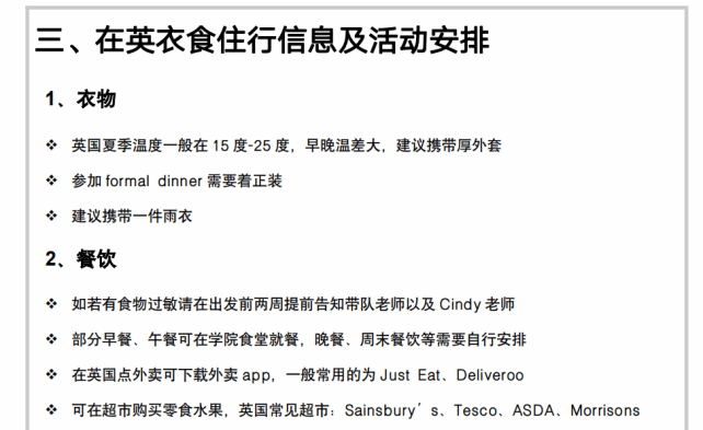 为了培养学生海外出行的安全意识,确保学生的人身和财产安全,国际合作处及学院分别在5月17日、6月21日、27日、7月4日面向覆盖项目团队全体师生,从行前准备事项、活动安排、出行安全纪律、紧急情况应急方案等内容进行了全面细致的教育培训,加深同学们对本次海外实践研学活动的了解,树立安全意识和责任意识,为活动顺利开展打下坚实基础。