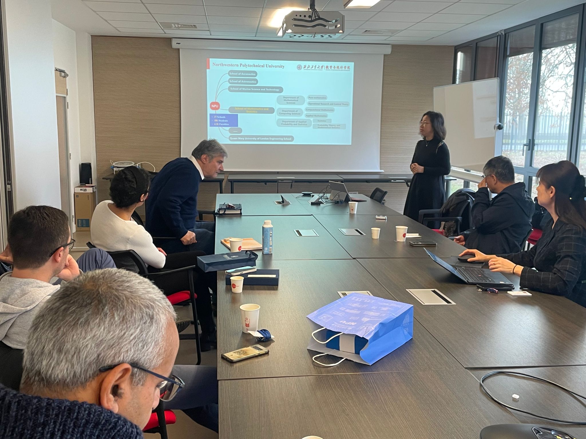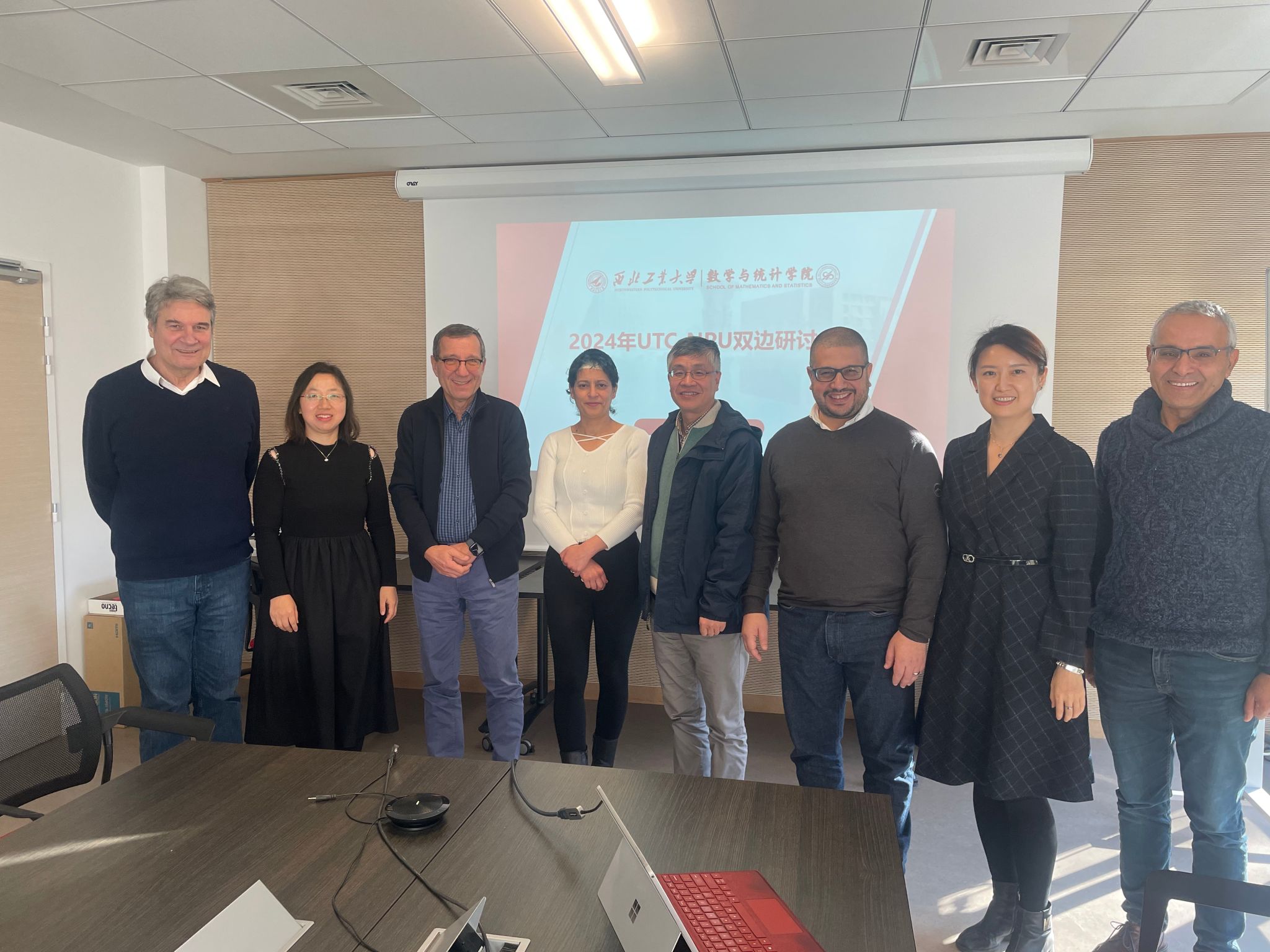 11月30日,经肖曼玉教授前期积极协调沟通, *成人片 代表团访问法国贡比涅技术大学数学所,洽谈两院合作事宜。对方出席人员包含数学所主任Salim Bouzebda教授、Faker Ben Belgacem教授、Nikolaos Limnios 教授以及Roverval实验室主任Piotr Breitkopf教授、Ludovic Cauvin教授。