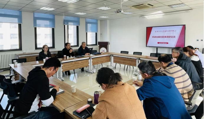 在随后的交流讨论中,学院建议出版社可以为青年教师提供编著者须知的内容,适当设立一些奖项,激励教师进行专著与教材的创作,并通过参加行业学会,形成伙伴关系,将专著与教材推广出去。学院老师也就青年教师专著出版、系列规划教材、新形态教材音频、视频录制等相关问题与出版社社长、策划主任、策划编辑进行了深入的交流讨论。通过了解版权输出与引进,教材编写以及专著出版流程情况,教师们表示将结合所在学科优势与特色,科学进行教材及专著规划、培育与建设。出版社也表示将不断加强宣传推广力度,逐渐培养青年教师的教材著作发展,实现社内助推,不断提高教师作者的影响力,积极为学校“双一流”建设服务。