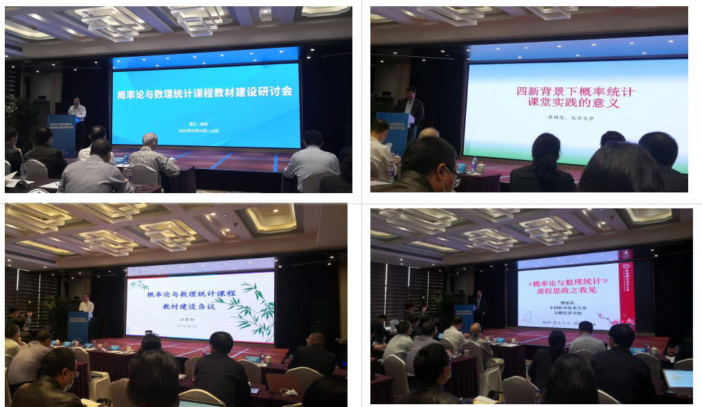 教育部高等学校大学数学课程教学指导委员会、高等学校大学数学教学研究与发展中心、浙江大学数学科学学院和高等教育出版社主办的“概率论与数理统计课程教材建设研讨会”于2021年10月15-16日在杭州举行, *成人片 副院长都琳带队,统计学专业负责人王亮、唐亚宁、谢文贤和林伟老师等一行人参加了会议。