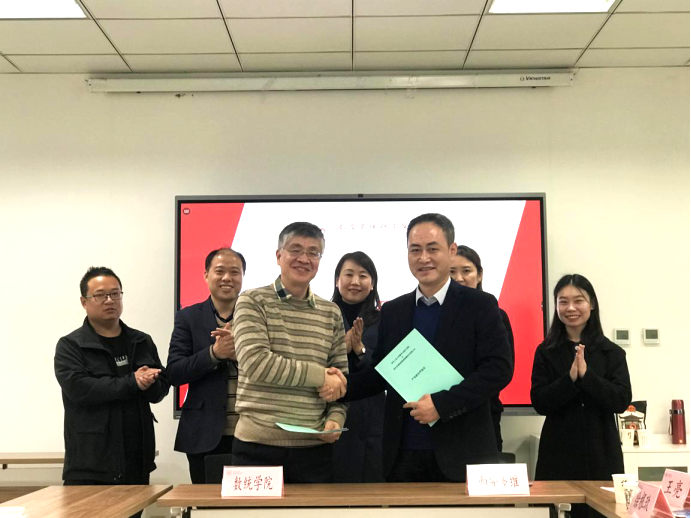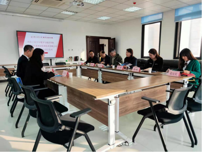 11月2日,成人片 与西安多维机器视觉检测技术有限公司在长安校区启翔楼357会议室举行产学研合作协议签订仪式。 *成人片 院长聂玉峰、党委书记王莉、副院长都琳、副院长徐根玖、应用概率统计系主任王亮、学工秘书程姣姣,西安多维机器视觉检测技术有限公司总经理宋世刚、技术总监薛丽丽共同参加了本次签订仪式。