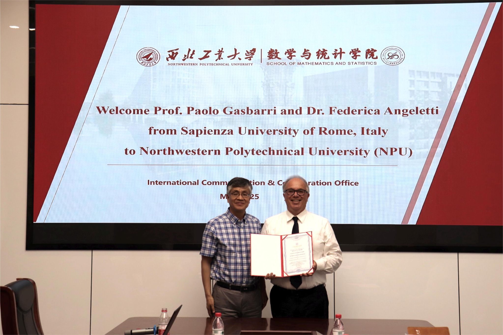 之后,肖曼玉教授介绍了成人片 相关情况。双方就本科生海外毕业设计、硕博联合培养暑期国际学堂等合作事项展开深入探讨。聂玉峰院长代表学院向 Paolo Gasbarri 教授颁发了“九章荣誉教授” 聘书,表达了对此次合作的高度重视。聂院长期待以此次合作为起点,推动两校在航天数学建模、复杂系统分析等领域的联合攻关,共同探索学术前沿,培养具有国际视野的高素质人才。