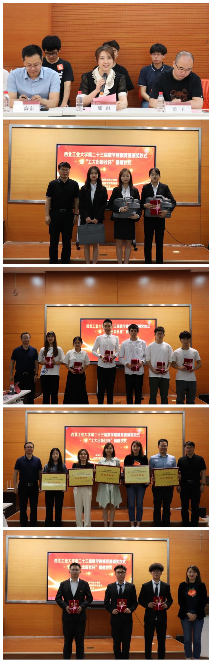 5月31日,长安校区启真楼105会议室师生欢聚一堂,成人片 第二十三届数学建模竞赛颁奖仪式暨“工大出版社杯”捐赠仪式在此隆重举行。教务处副处长彭亮,出版社社长高大力、副社长雷军,学校教育基金会副秘书长徐伟侠, *成人片 党委书记王莉,计算机学院院长於志文,陕西省高等学校教育名师、大学生数学建模创新实践基地负责人孙浩以及相关获奖学院党委副书记、师生代表应邀出席本次颁奖仪式。会议由王莉主持。