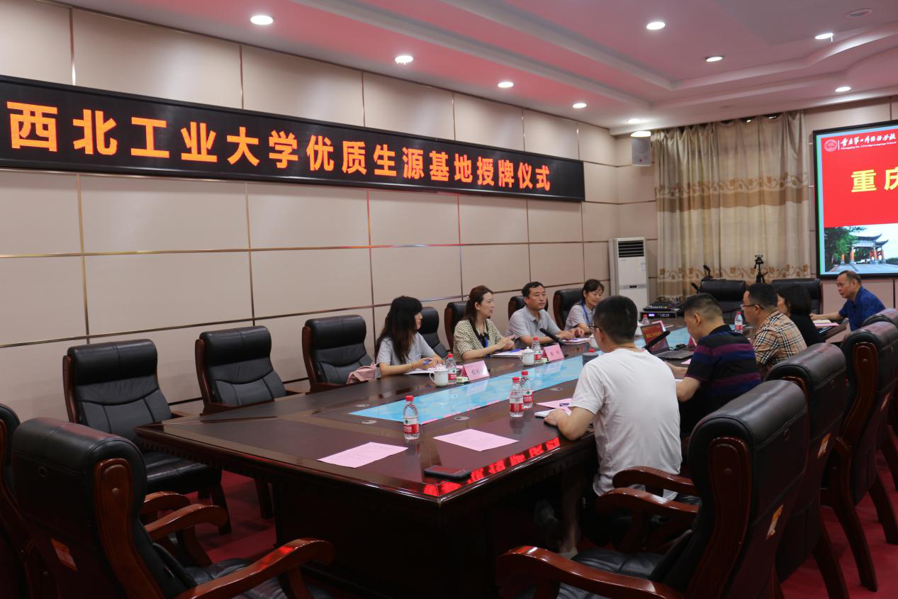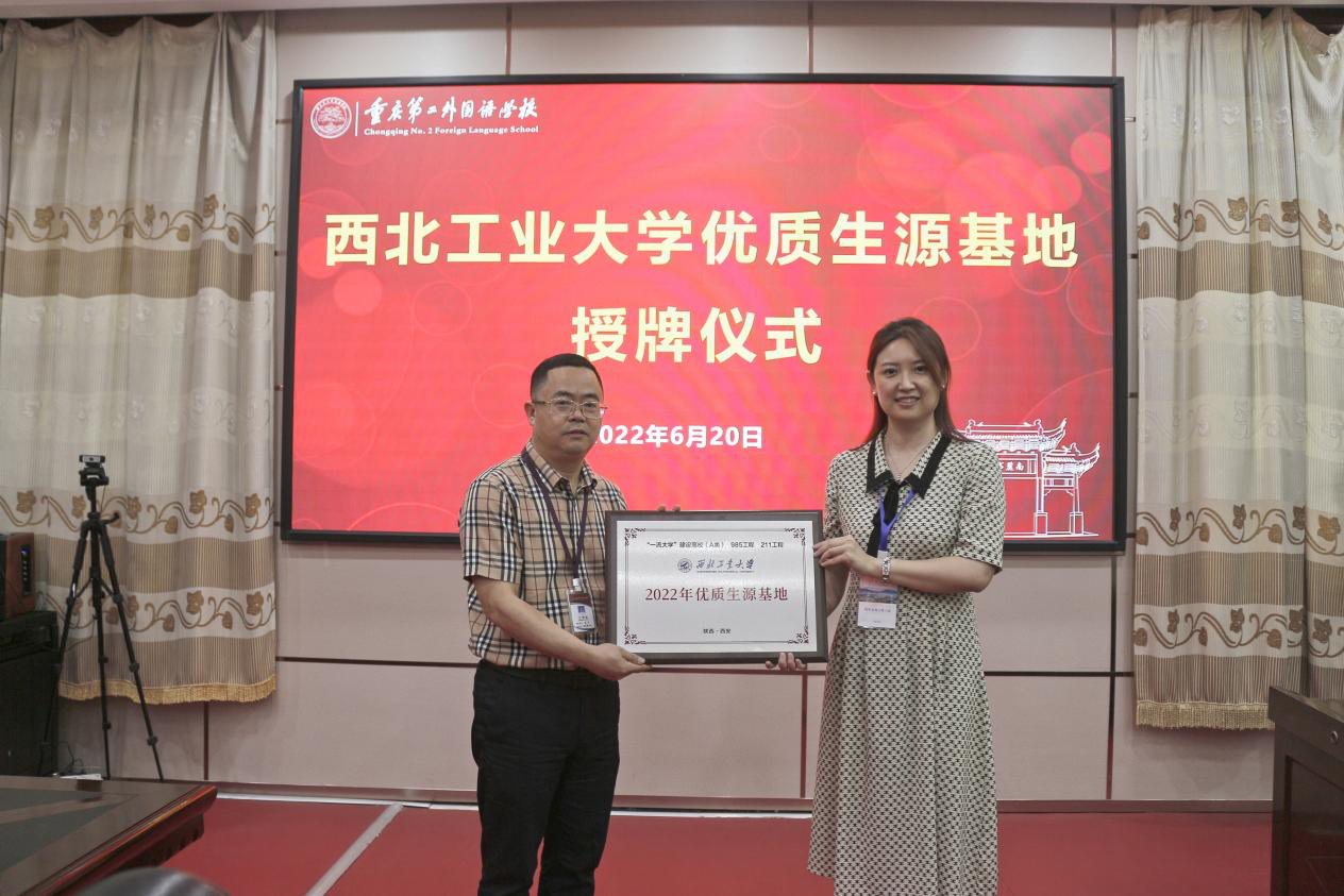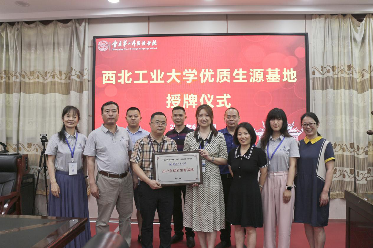 为全力做好2022年本科生招生宣传工作,吸引更多优质生源报考成人片 ,推进学校优质生源基地的建设与发展,在校院两级部门的大力支持下, *成人片 副院长都琳、教授陆全、副教授王振海以及院办秘书程姣姣一行于6月20日前往重庆第二外国语学校开展优质生源招生宣讲及基地授牌事宜,重庆第二外国语学校党委副书记廖庆、副校长陈传霞、党委行政办公室、高一高二年级管委会及家长代表等相关人员参与了此次活动。