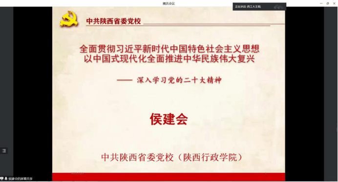 12月1日, *成人片 邀请中共陕西省委党校(陕西行政学院)侯建会教授作党的二十大精神专题辅导报告。辅导报告通过线上视频的方式开展,学院党委书记王莉主持,学院领导班子成员、教职工党员、学生党员代表共计100余人参加本次报告会。