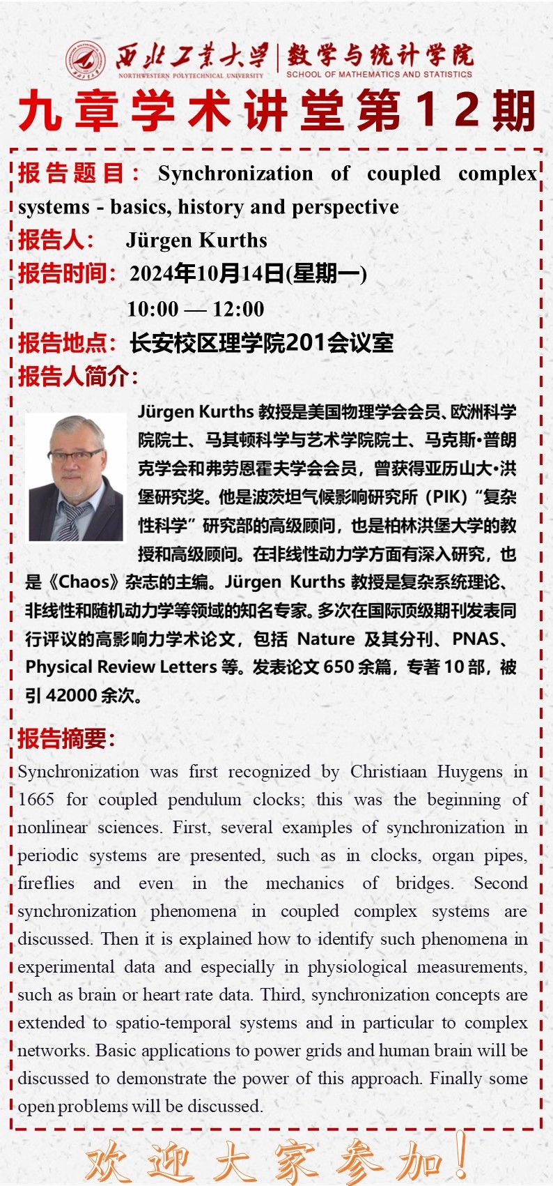 【九章学术讲堂第12期】Synchronization of coupled complex systems - basics, history and perspective