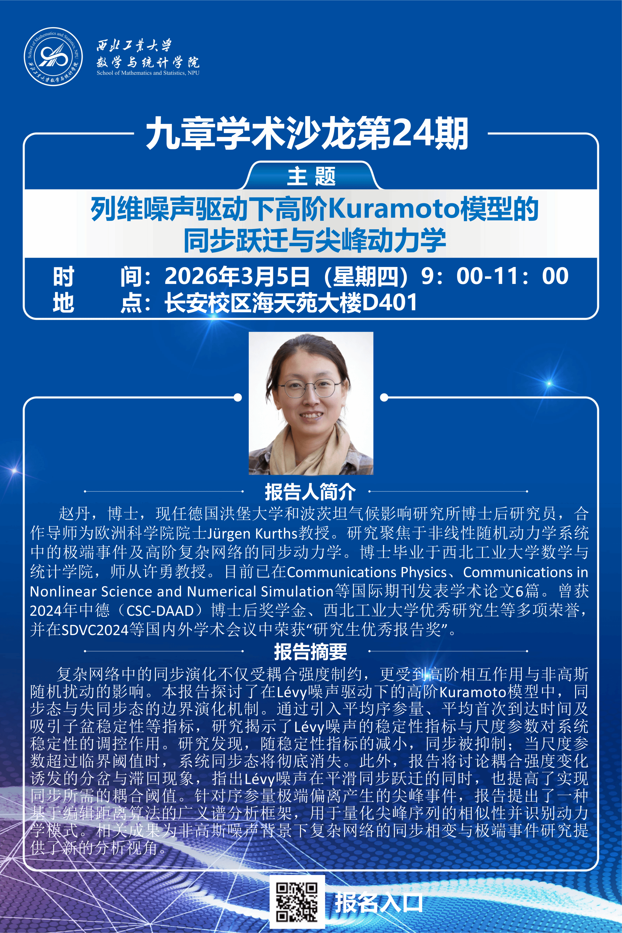 【九章学术沙龙24期】列维噪声驱动下高阶Kuramoto模型的同步跃迁与尖峰动力学