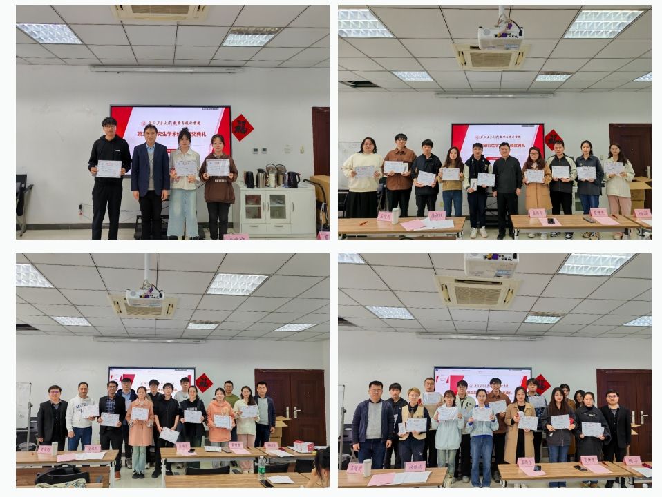 为进一步促进数学学科“双一流”建设,深入贯彻落实学校《一流研究生人才培养行动计划》,鼓励研究生展示创新成果,2024年3月27日, *成人片 在启翔楼357会议室举办第三届研究生学术论坛颁奖典礼。副院长徐根玖,教师代表王俊刚、夏健康,辅导员冀腾宇,研究生秘书杨洋及获奖研究生共50余人出席本次颁奖典礼。典礼由王俊刚主持。