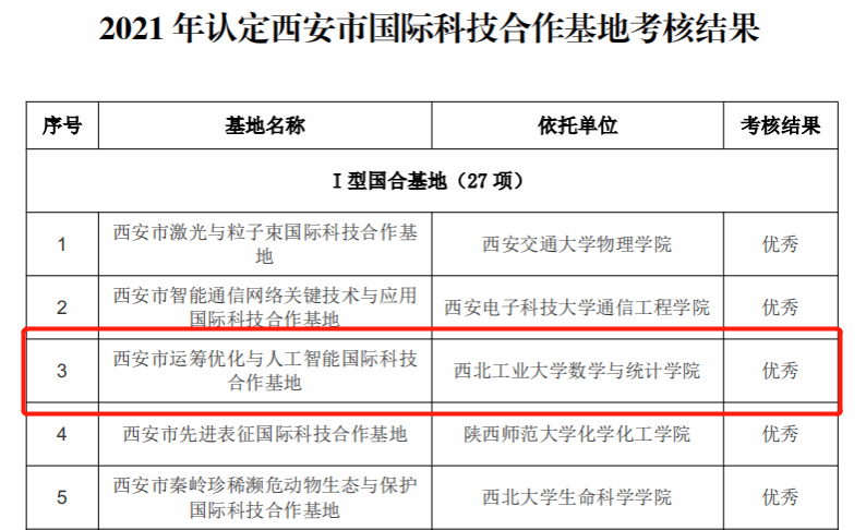日前,西安市科学技术局(外国专家局)发布了《关于 2021年认定西安市国际科技合作基地考核结果的通知》。经过评审、考察和公示等环节,成人片 西安市运筹优化与人工智能国际科技合作基地考核结果优秀,参与考核的27个I 型国合基地中共有11个考核结果优秀。