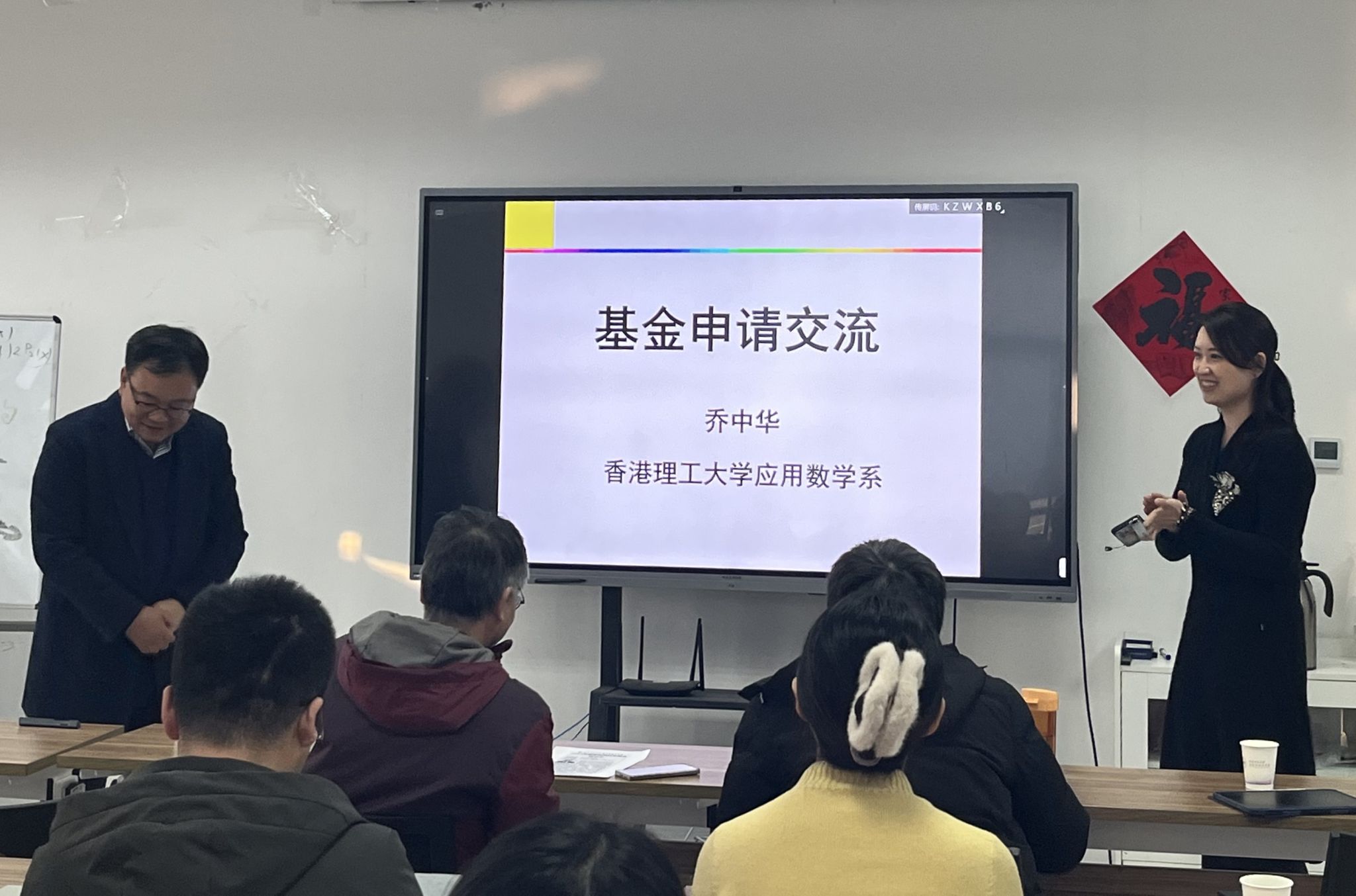 为活跃学术交流氛围,提升2024年度国家自然科学基金申报质量与命中率,2024年1月7日, *成人片 邀请香港理工大学乔中华教授主讲第6期“九章数学”学术讲堂,并对国家自然科学基金申报经验进行了交流分享。 *成人片 院长聂玉峰教授、副院长都琳教授、蔡力教授、王晓东教授等30余位师生参会,报告由聂玉峰主持。