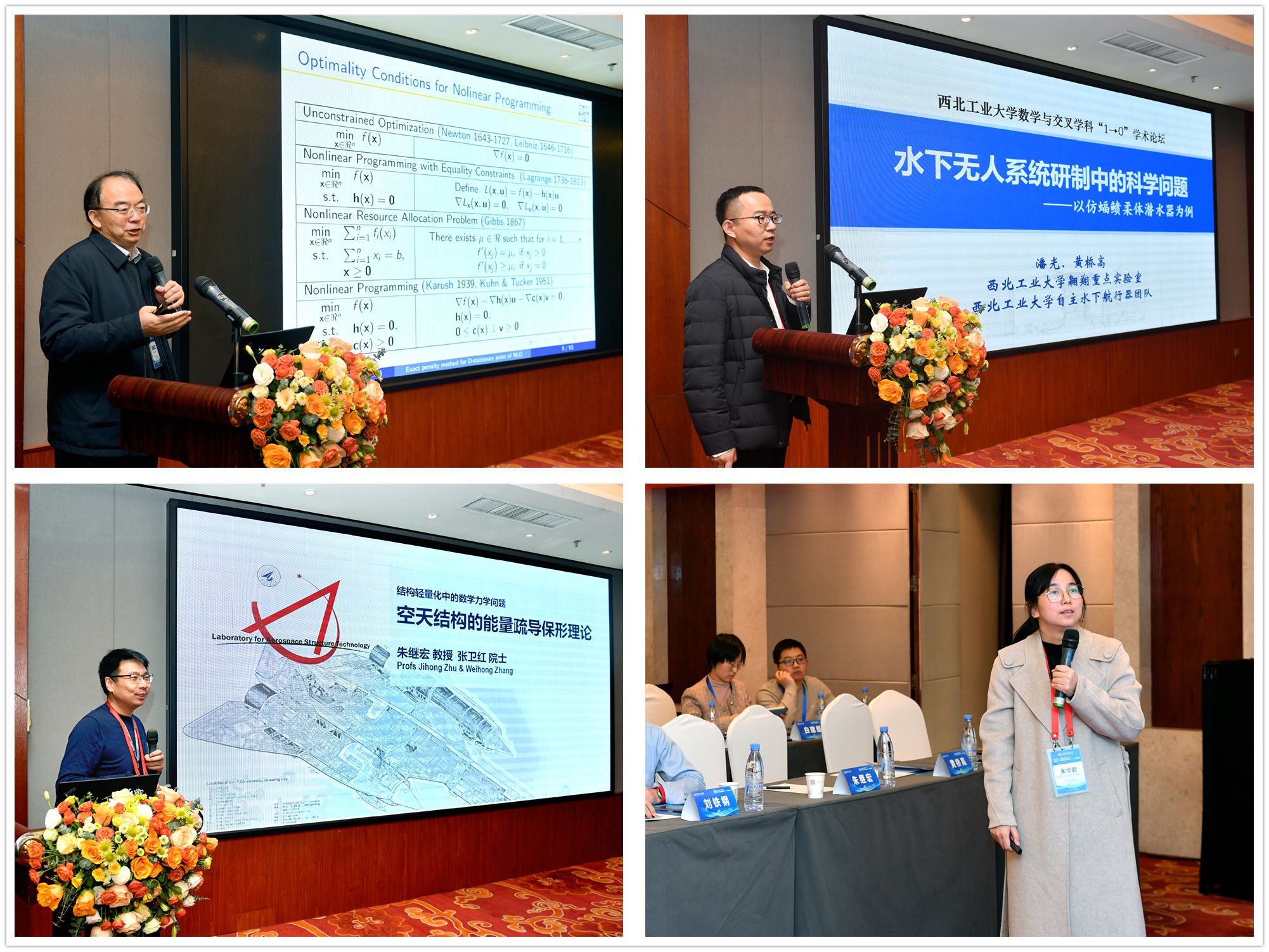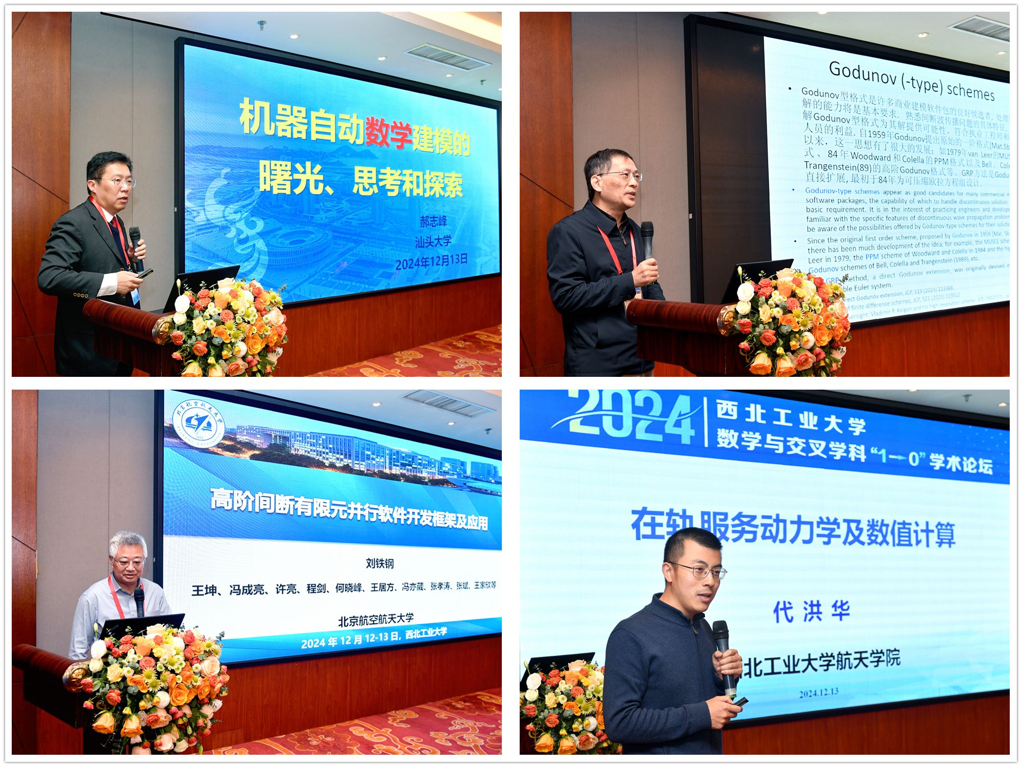 2024年12月12日-13日,由成人片 发展规划处、科学技术研究院、 *成人片 共同举办的成人片 数学与交叉学科“1→0”学术论坛在西安举行。会议邀请中国科学院数学与系统科学院副院长戴彧虹研究员、北京大学汤华中教授、北京航空航天大学刘铁钢教授、汕头大学校长郝志峰教授、空天飞行空气动力科学与技术全国重点实验室计算数学研究中心朱华君主任、成人片 机电学院朱继宏教授、航天学院代洪华教授、航海学院黄桥高教授做大会特邀报告,中国科学院院士、成人片 副校长张卫红教授,发展规划处副处长袁云,科学技术研究院院长王伶、处长李蕴、副处长屈峰, *成人片 院长聂玉峰、党委书记王莉、科研副院长都琳及领导班子成员、学院教师,以及陕西省24所高校教师代表等80余人出席本次论坛。论坛由 *成人片 党委书记王莉主持。