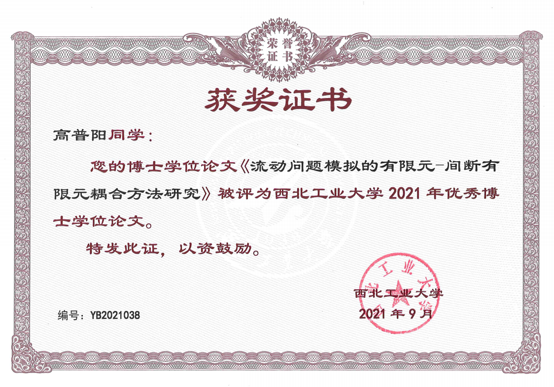 个人简介:高普阳,男,2013级直博生,师从欧阳洁教授,以第一作者身份在国内外著名学术期刊上累计发表论文5篇,均被SCI检索收录(包含中科院TOP期刊论文1篇),影响因子累计达13.9;2019年8月获批国家自然科学基金青年基金项目1项(11901051),并参与国家自然科学基金面上项目一项(11971075)。获得陕西高等学校科学技术一等奖一项(高聚物加工过程的数学模型及数值方法研究),2019,第五完成人。