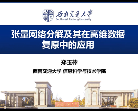2024年12月19日, *成人片 第13期“九章学术沙龙”成功举办。沙龙邀请西南交通大学郑玉棒助理教授为成人片 师生带来了题为《张量网络分解及其在高维数据复原中的应用》的学术报告。 *成人片 20余位师生参会,报告会由徐爽副教授主持。