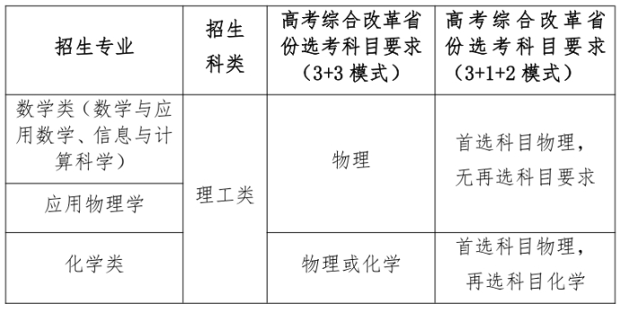 各招生专业、招生科类和高考综合改革省份选考科目要求如下: