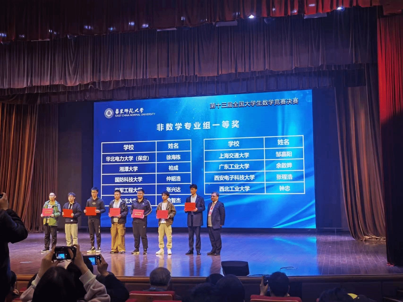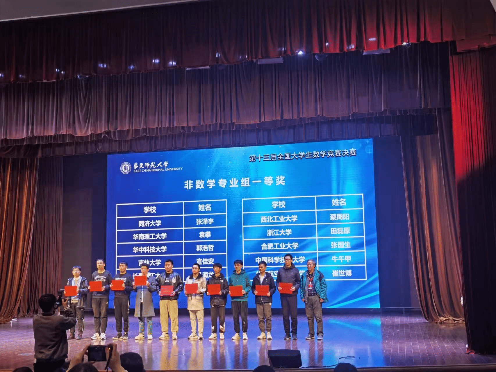 2023年3月25日早上,第十三届全国大学生数学竞赛决赛在华东师范大学举行。748名来自北京大学,清华大学,中国科技大学,西安交通大学等全国高校的学生同场竞技,展示其强大的数学实力。成人片 6名学生参赛,最终取得优异成绩,共获得全国一等奖2项、全国二等奖2项、全国三等奖2项。