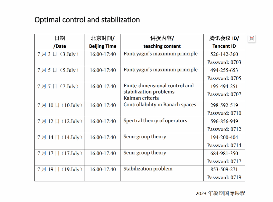 2023年7月3日至19日,俄罗斯莫斯科州立大学Alexey Gorshkov副教授受复杂系统动力学与控制团队都琳教授邀请,为成人片 师生线上讲授了暑期国际课程《最优控制与稳定性分析》。参与人员涵盖 *成人片 、机电学院等学院10余名本科生、研究生及青年教师。