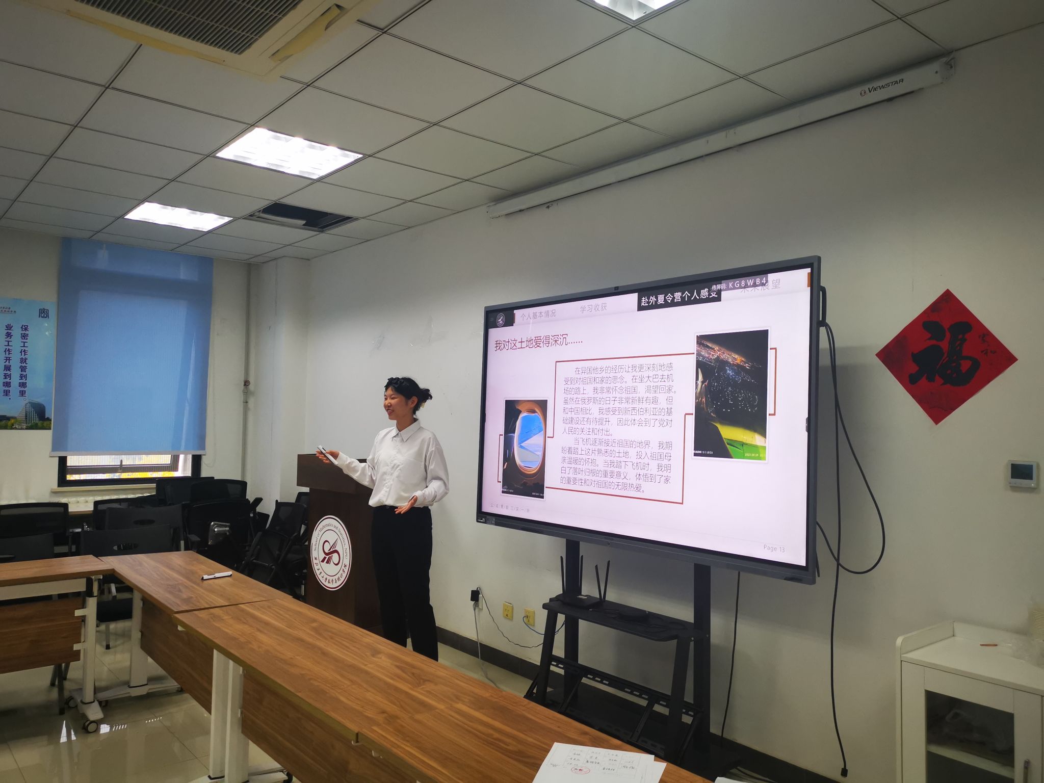 之后,参加答辩的17名同学分别从个人基本信息、学习收获、项目感受及未来展望四个不同角度展示了交流期间的学习生活,内容真实丰富,讲述生动,充满激情。
