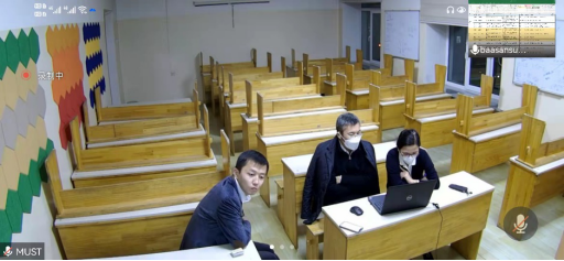 针对蒙古学生远程学习情况这一个议题,数统学院概率统计系主任王亮教授汇报了外蒙古学生学习情况包括组织单独远程上课授课、配备单独助教协助辅导,以及学生最终学习成绩情况。肖曼玉老师汇报了学院开展学习情况调查结果,提出了线上授课网络信号不稳定、学生跟课与老师交流不便等具体问题。接下来,蒙古科技大学副院长塔米尔教授,简要汇报了蒙古学生在学校学习环境、学习状态和对学生的管理情况,通过了解分析现有8名学生的成绩,希望能与我方一起针对学生当前远程学习问题,寻求有效的解决方案。