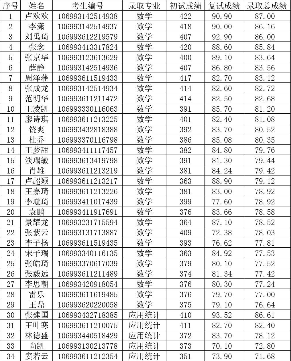 2023年硕士研究生拟录取名单公示