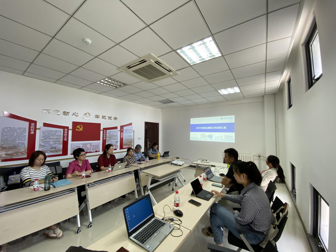 2021年9月29日, *成人片 在启翔楼329召开2021年招生工作交流研讨会。学校教务办公室主任韩寅奔、招生办公室副主任李佩、张懿鑫、 *成人片 副院长都琳、重庆招生组负责人林伟老师及招生组中的8位老师参与了本次研讨会。会议由副院长都琳主持。