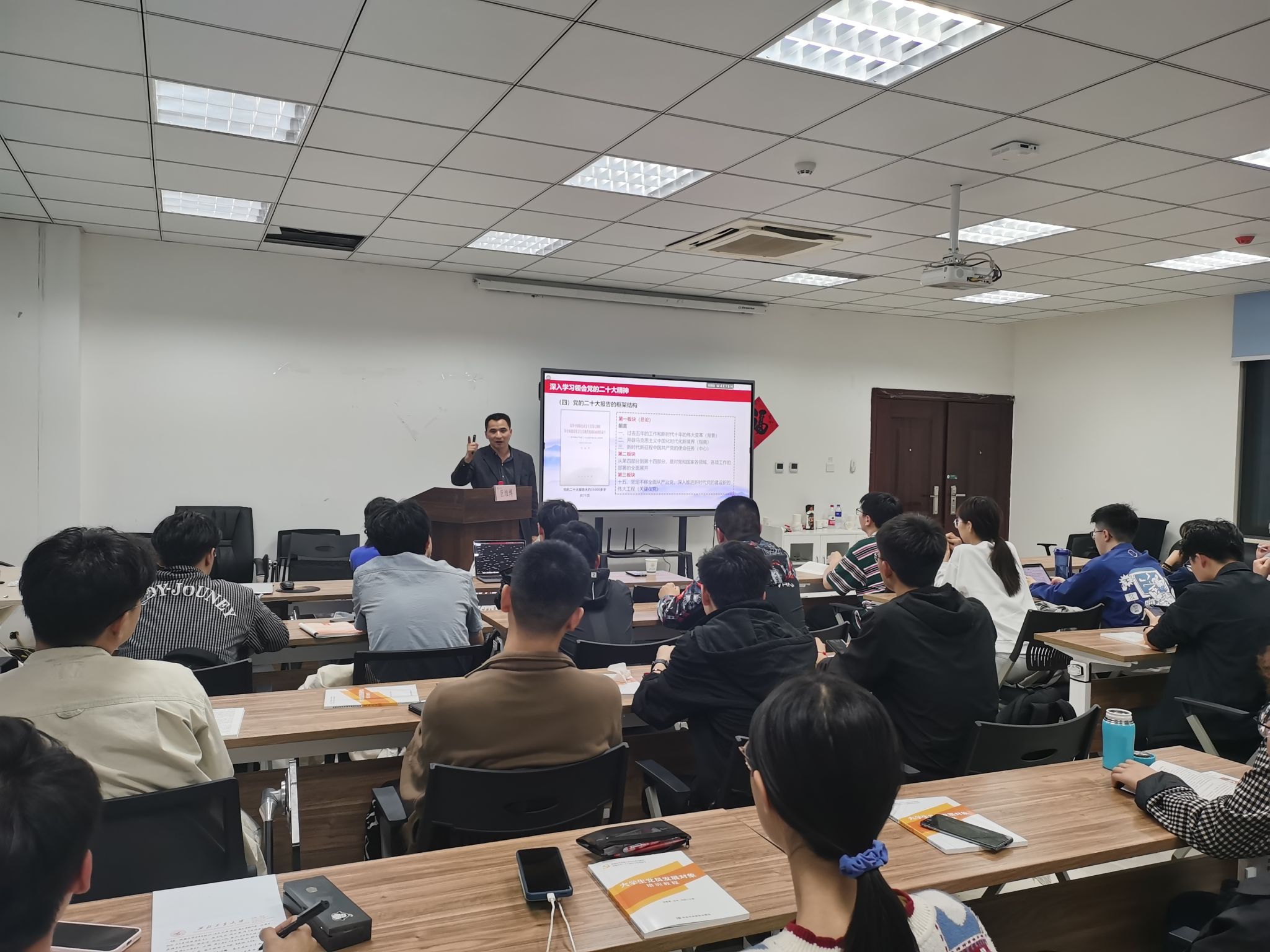 5月8日晚上, *成人片 邀请力学与土木建筑学院党委书记巨维博讲述专题党课,学院2023年第1期发展对象培训班全体成员参与学习。